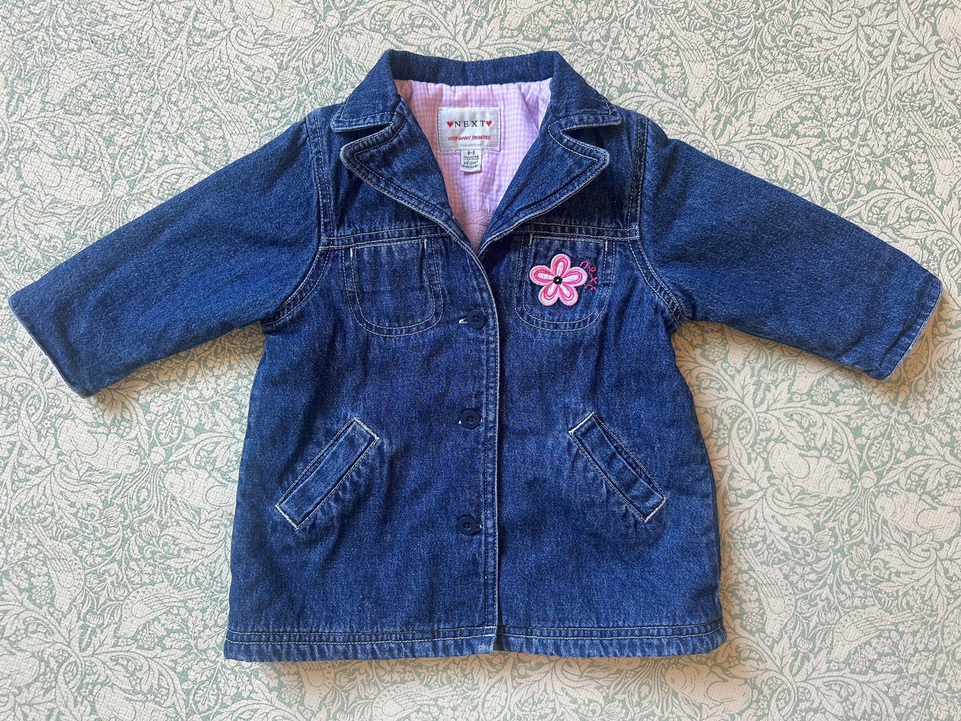 NEXT denim jacket with pink embroidery and fleece lining