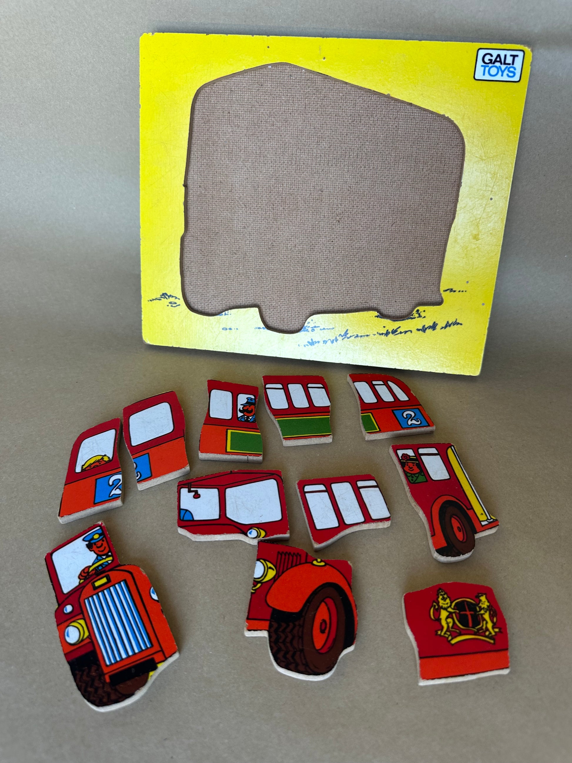 Vintage Galt wooden bus play tray puzzle.