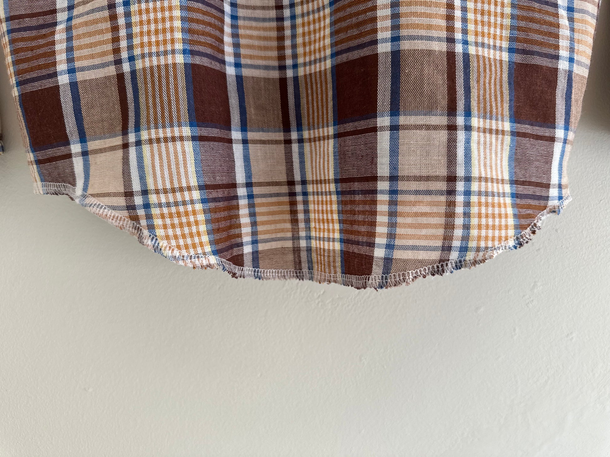 Vintage Wrangler permanent press check shirt with press stud fastenings. Raw hem